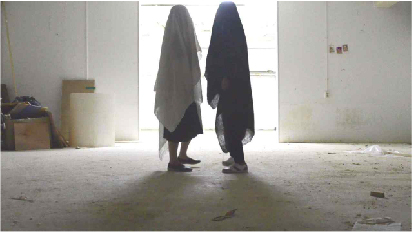 무채색의 천을 뒤집어쓴 그들은 끊임없이 걷는다. 이따금 멈추어선다고 해도 그것은 일시적인 휴지이지 지속적인 정지가 아니다. 더 이상 지어지지 않을 건물에, 영원한 사이에 머물고 있는 것이다. 기다란 복도와 아무것도 없는 공동을 지나 문지방과 열쇠구멍 사이에서 떠돌아다닌다. 지나가는 일은 일시적인 것이지만 영원히 지나가야만 한다면 그것은 더 이상 ‘지나감’이 아니다. 떠돎이 곧 머묾이 되는 임시의 영원화 과정. 이 긴, 긴 밤을 지나면 무엇이 있을까.
