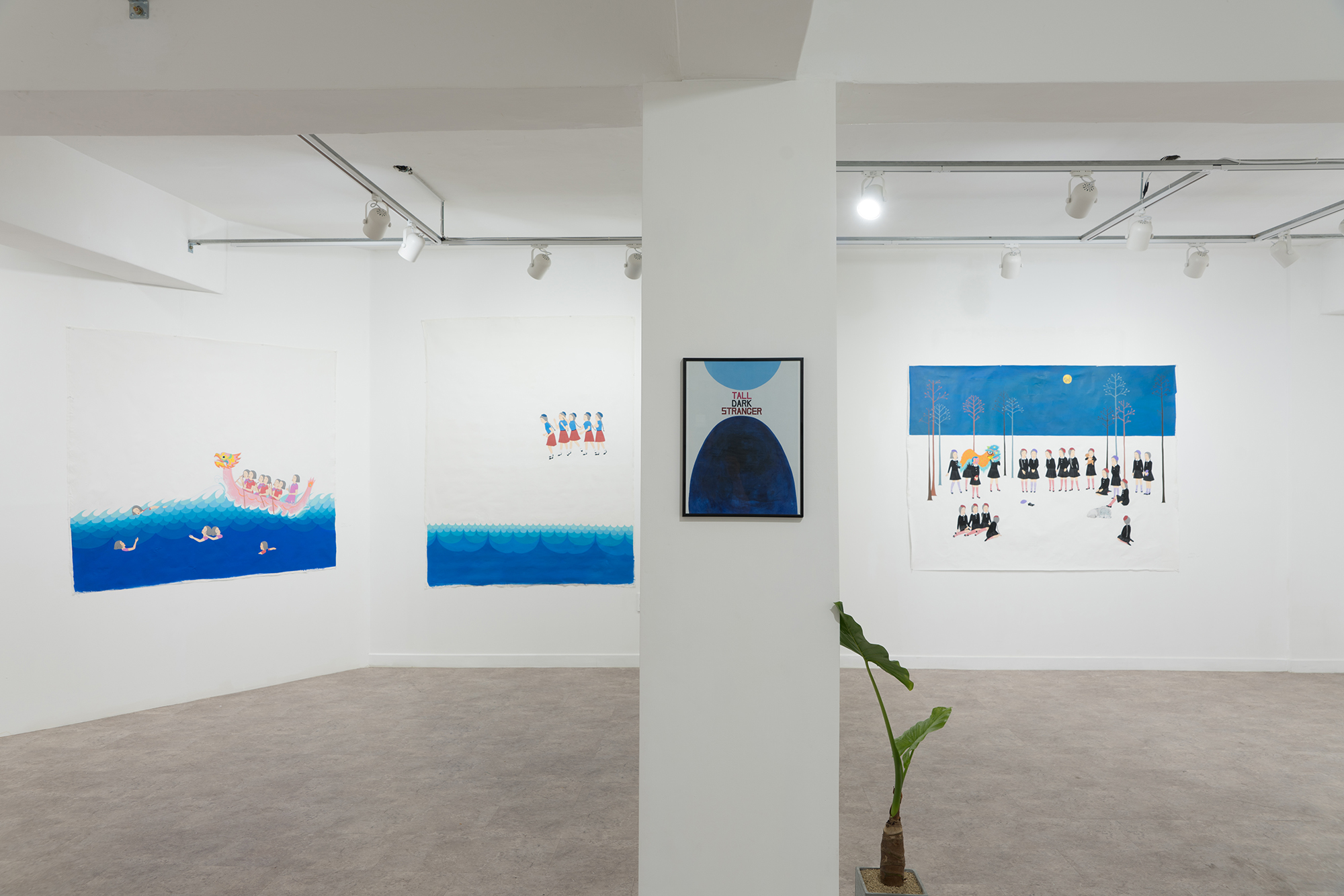 Tall Dark Stranger가 누구인지 혹은 무엇인지 나는 정확히 알지 못한다. 말 그대로 커다랗고 어둡고, 낯선 무언가 일거라고 희미하게 짐작만 할 뿐이다. 그저 커다란 구멍 같은 형태일수도 있고 혹은 흰 보자기를 뒤집어 쓴 체 유령을 흉내 내는 누군가일수도 있는 그것은 언젠가부터 내 곁에 함께 하고 있다. 언제부터 곁에 있었는지 조차 알 수 없지만 이제는 그것의 존재를 안다. Tall Dark Stranger는 과연 어느 밤 내게 찾아와 해를 끼치는 무서운 괴물 같은 것일까 아니면 어딘가 낯선 곳으로 나를 이끌어 줄 신비한 무언가 일까? 어느 쪽인지 결코 알 수는 없겠지만 내 곁에 웅크리고 있다는 것과 아마도 당분간 떠나지 않을 거라는 것을 알고 있다.
