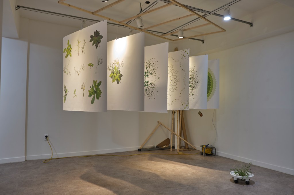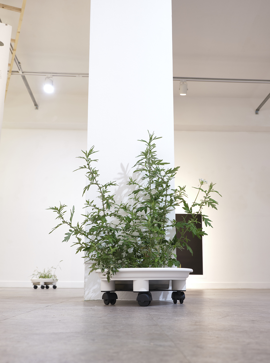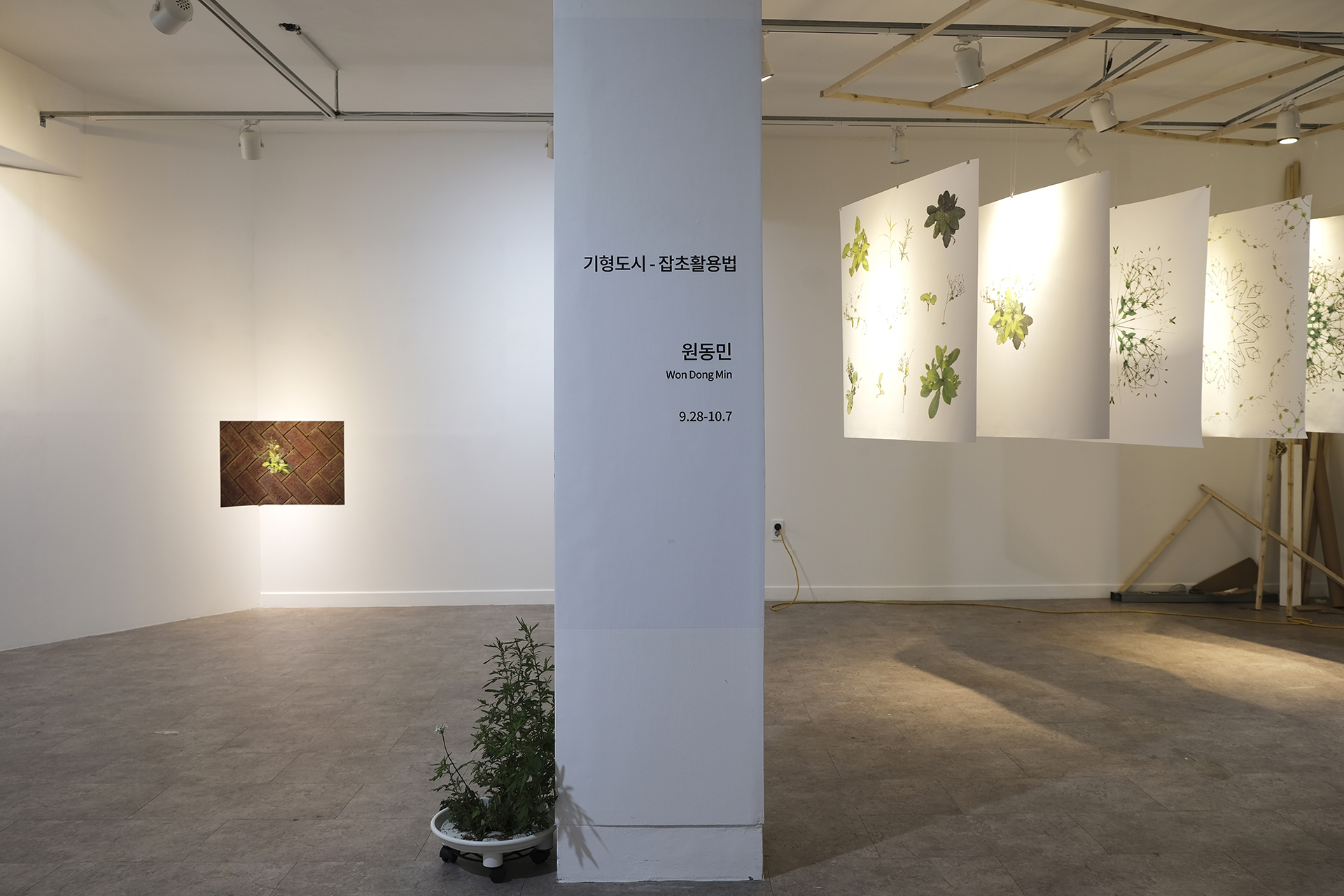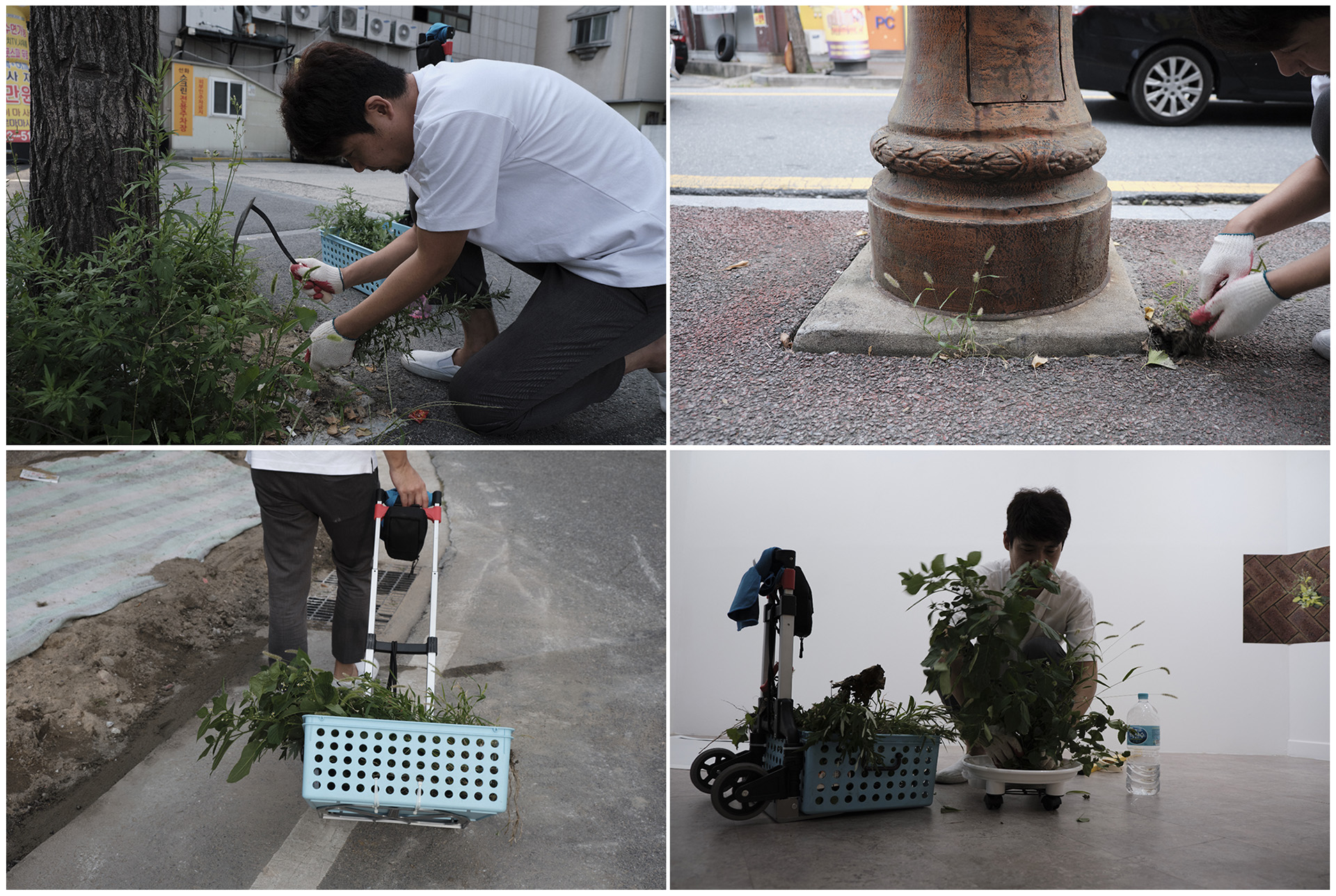 잡초를 다양한 문양으로 변형해 전시장 내부에 설치했다. 그간 주로 진행해오던 디지털 콜라주 작업 방식으로, 현수막천과 프린트를 이용했다. 여러 종류의 잡초를 드로잉하고, 잡초를 바퀴가 있는 화분 받침대 위에 놓아 인공 섬처럼 만들기도 했다. 잡초 무리를 움직여 이동시킬 수 있도록 한 작업으로, 이는 재개발로 인해 떠나야 하는 사람들을 연상시킨다.