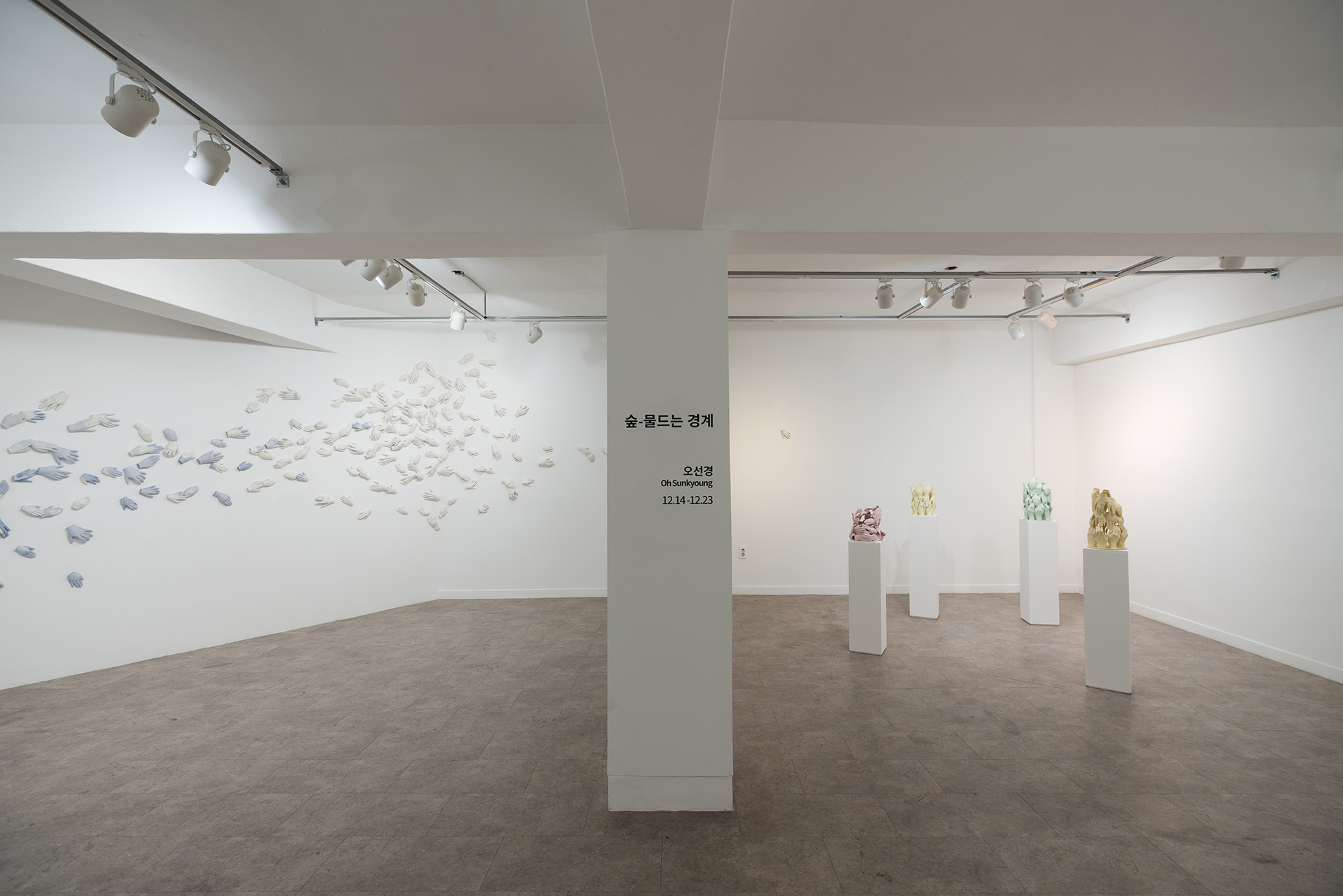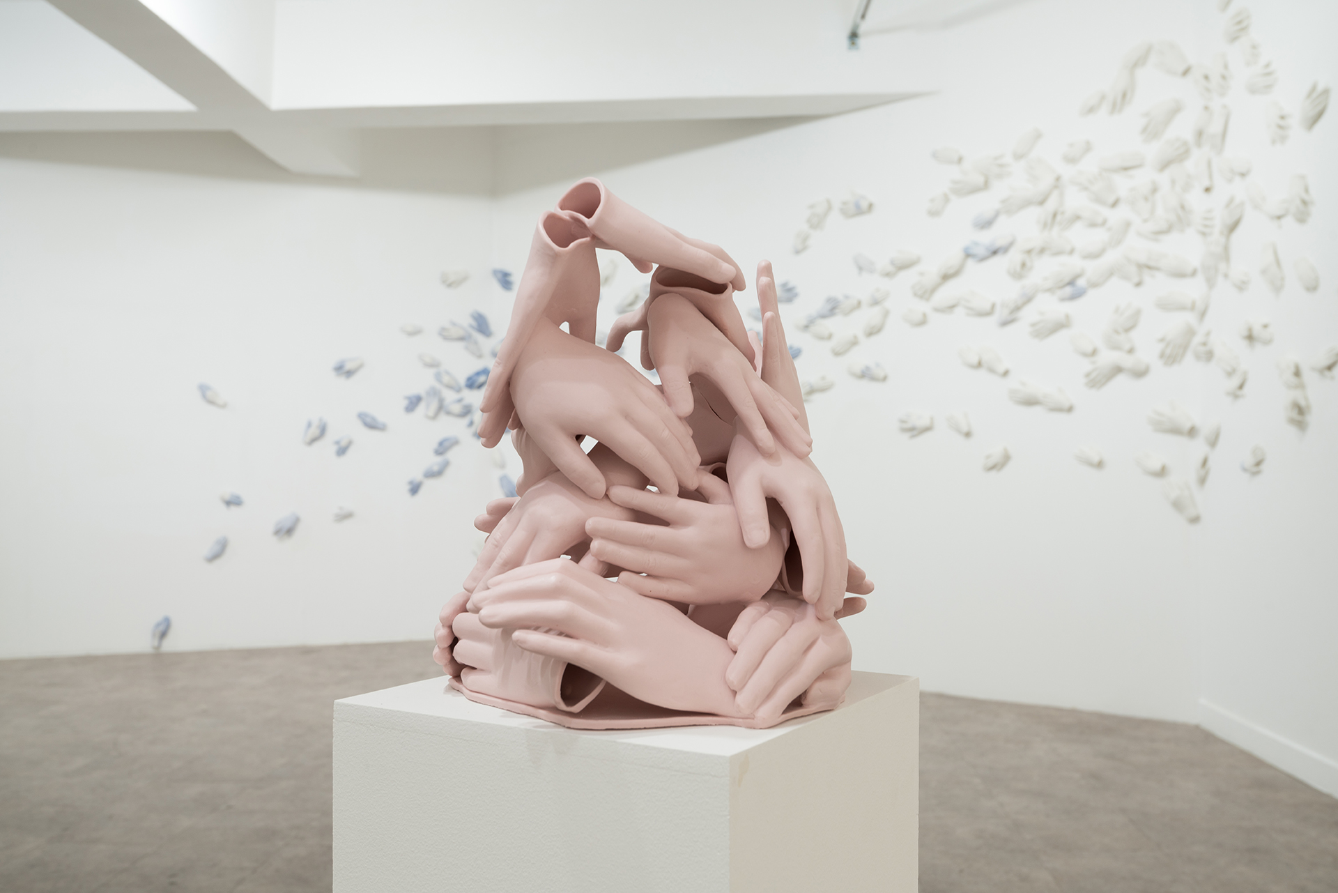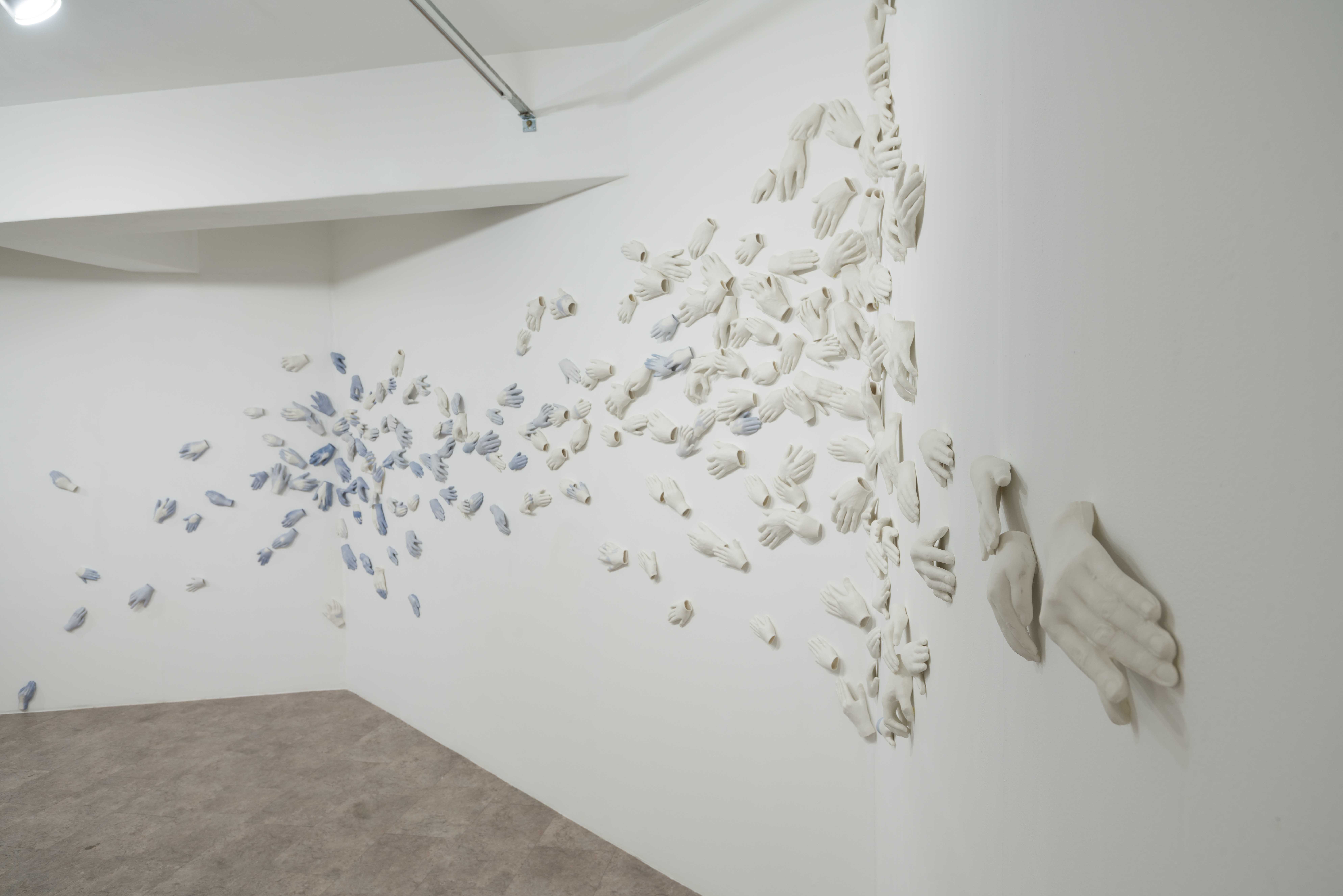 작고 보드라운, 여리고 가냘픈, 거칠음으로 가득 찬.. 각자의 시간과 삶의 색채를 머금은 손들은 한데 모이고 쌓여 서로의 경계 안에 혼재 되어 물들고 물들이며 풍경을 만들고, 사람과 사람이 생각과 생각이 지어낸 경계는 유기적이며 유의미한 파장을 일으킨다. 이곳에서 종의 다름을 가름질 하는 것은 무의미하며 존재와 생존에 관한 암묵적인 경의만이 있을 뿐이다.