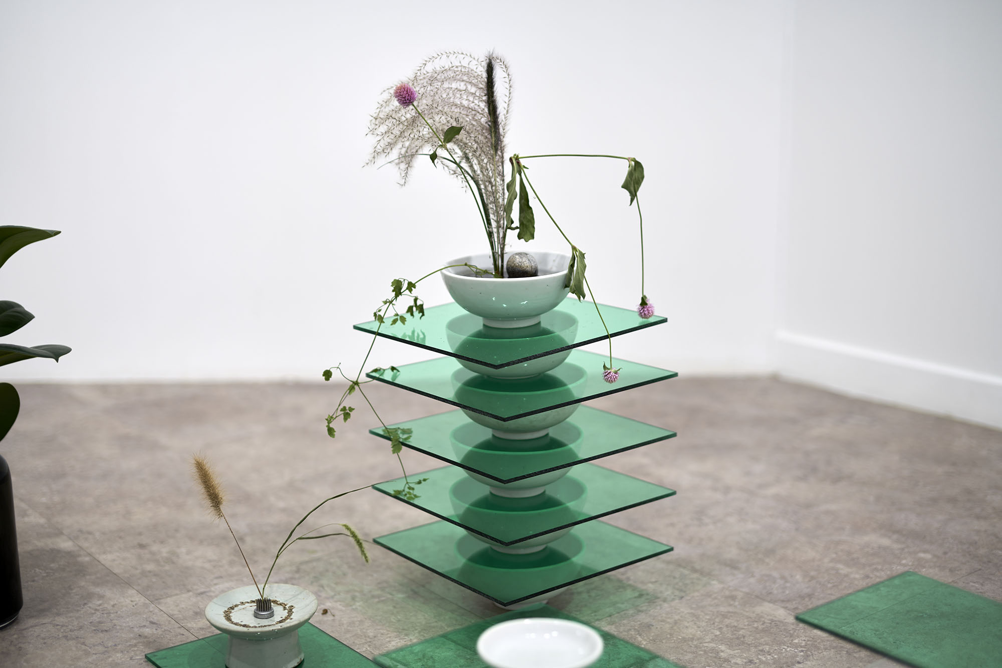 아버지의 수석과 금사 화병과 식물(고무나무, 버들)_가변설치_2020