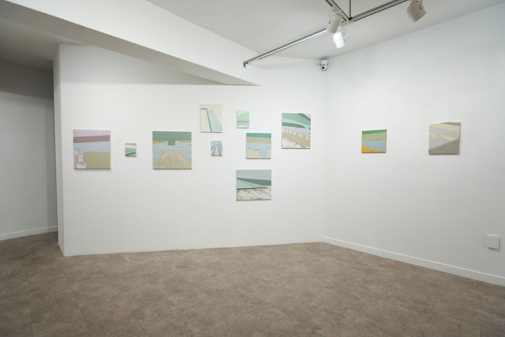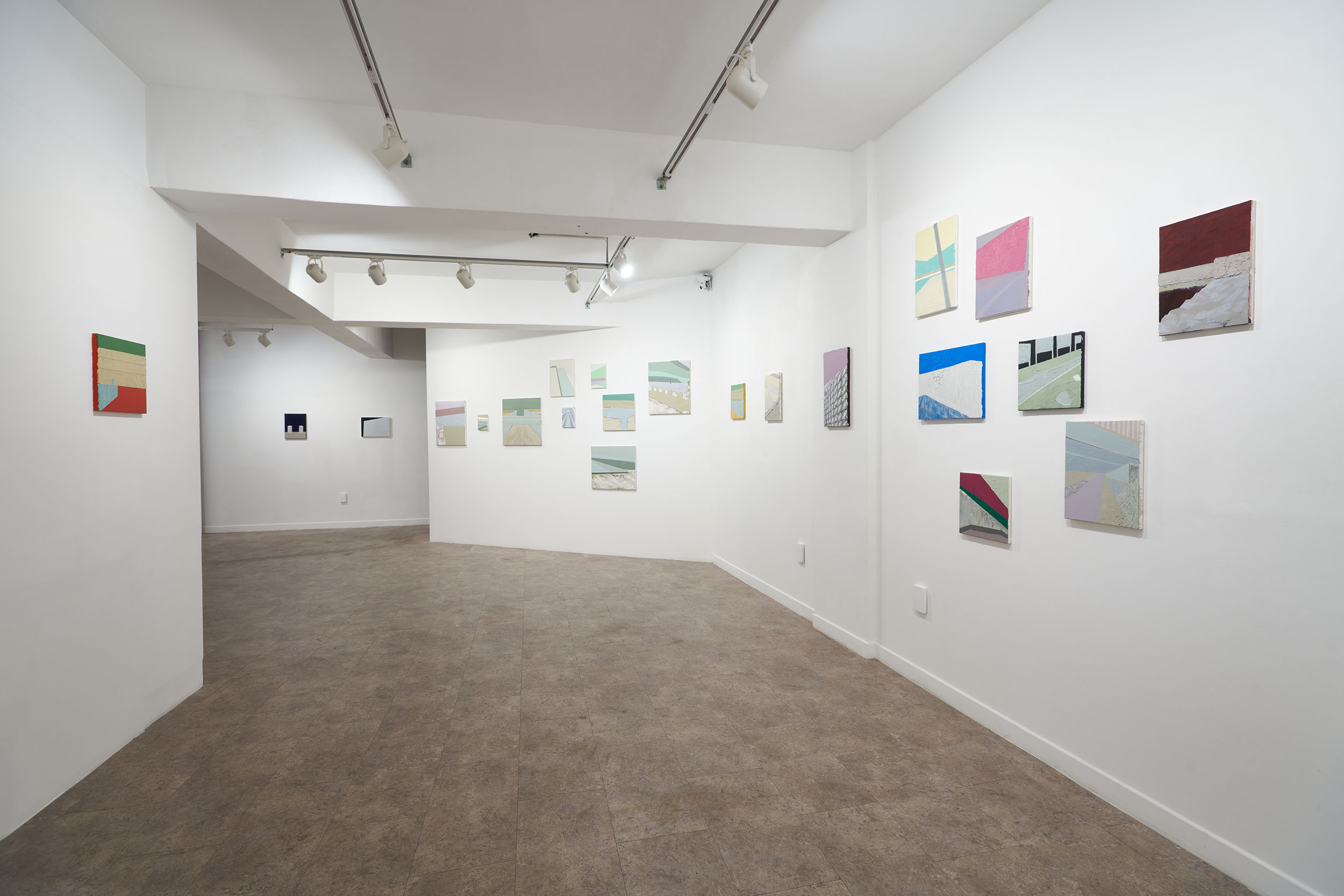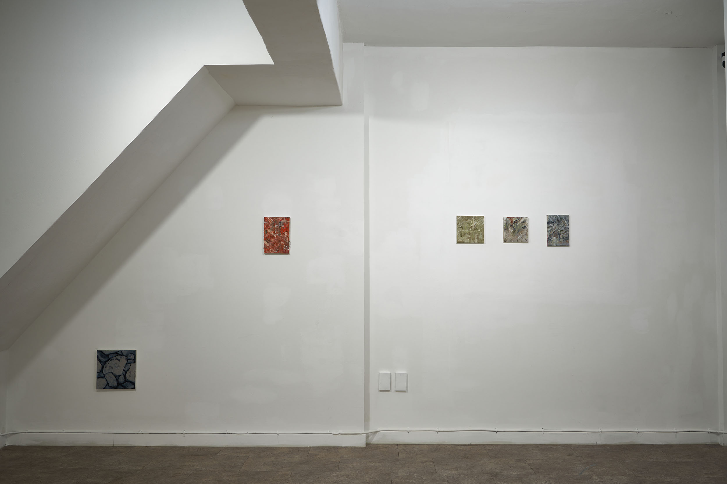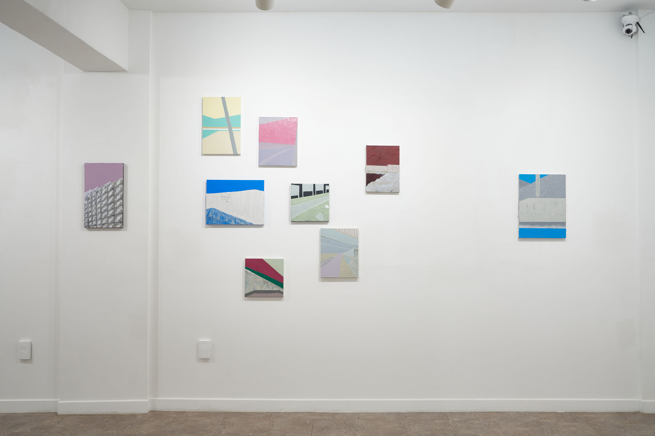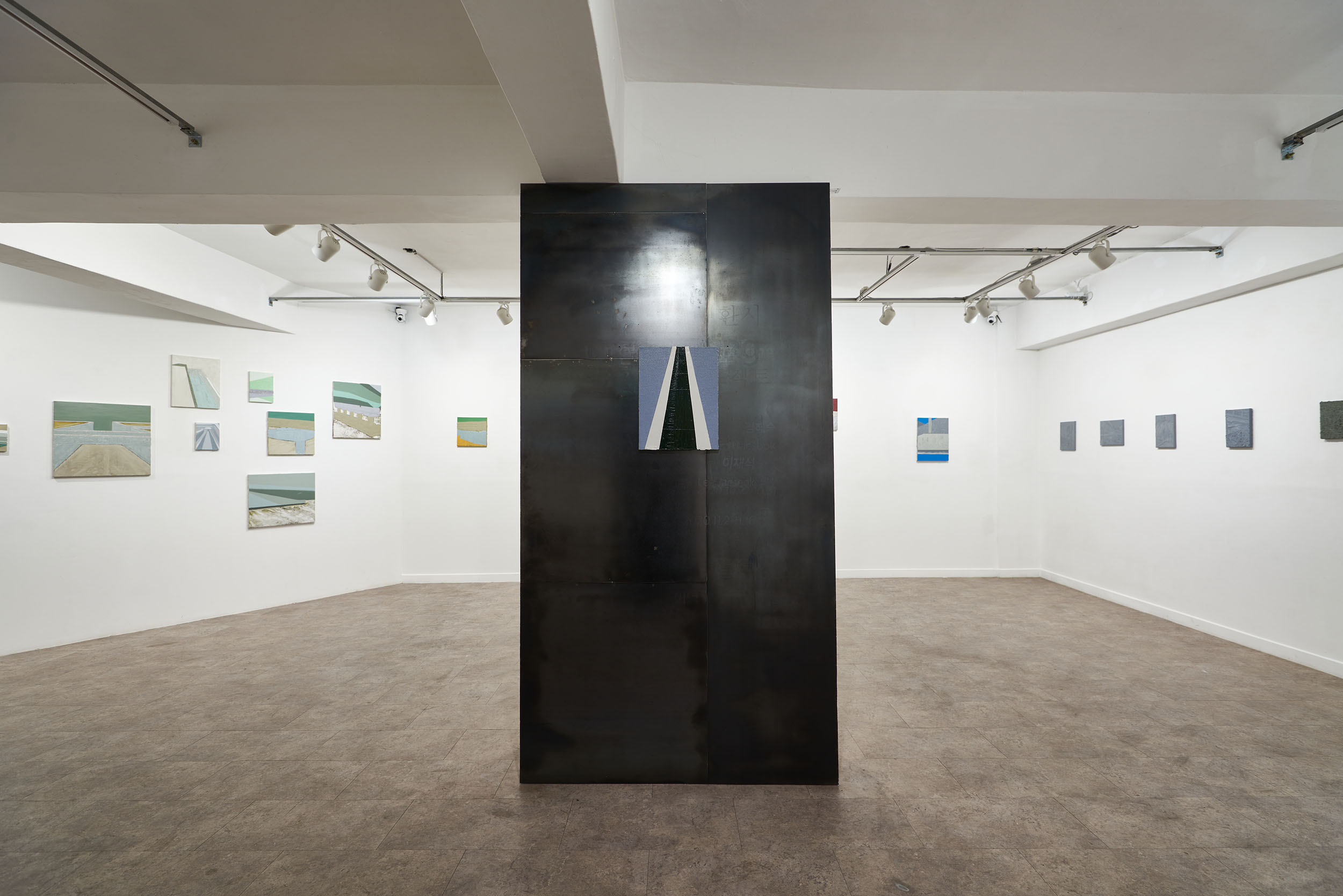 이 질문에 대한 답을 찾기 위해선 먼저 작가의 이전 전시를 복기해봐야 한다. 2018년 전시 ‘My Earth Worker'(이응노 미술관)에서부터 작가는 토목 공사 현장의 이미지를 캔버스 평면에 옮기기 시작한다. 과거 토목업에 종사하던 아버지의 준공 기록을 쫓아다니다 보니 작업이 그렇게 시작되었다고 밝힌 작가의 말처럼, 작가는 직접, 계속, 기록한다. 2019년 단체전 ‘조각, 그림'(Weekend, 2/W)과 ‘DELAY KIT'(SOSHO)에선 자신의 기록물을 기존과 다른 방식으로 접근한다. 몰탈(mortar)을 패널 위에 올려 굳혀서 일종의 부조(浮彫)를 만드는데, 건축적인 방법론을 차용한 이와 같은 제작 방식에서 작가는 자신의 기록물과 작업의 결과물을 최대한 근접하게 하려고 노력한다. 그런데 작가는 매체의 변화에도 불구하고 처음부터 자신의 작업물이 결국 평면일 수밖에 없다는 것을 이미 알고 있는 듯했다. 리서치 기록물은 대상의 표면 이상을 결코 넘어가지 않는다. 작가는 기록물을 통해 대상을 관찰할 뿐, 그 어떠한 서사도 용납하지 않기 때문이다. 작가는 오로지 대상의 표면을 만들어내는 데에만 집중한다. 이는 작가가 자신의 기록물을 어떻게 바라보고 있는지, 그것으로부터 무엇을 보려고 하는지에 대한 단서를 던져 준다.