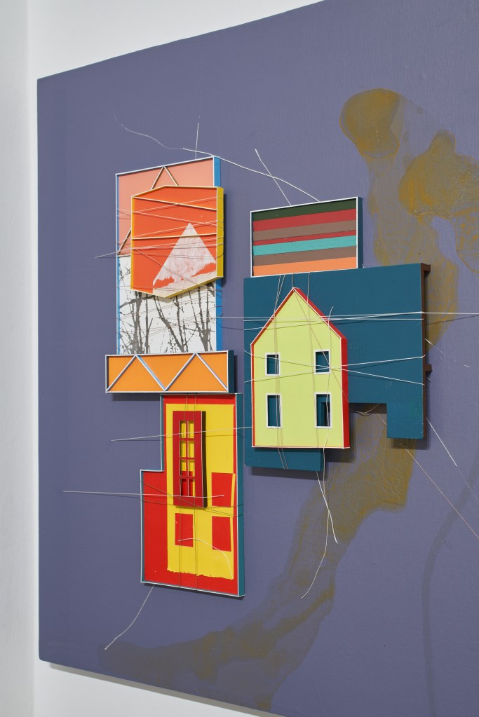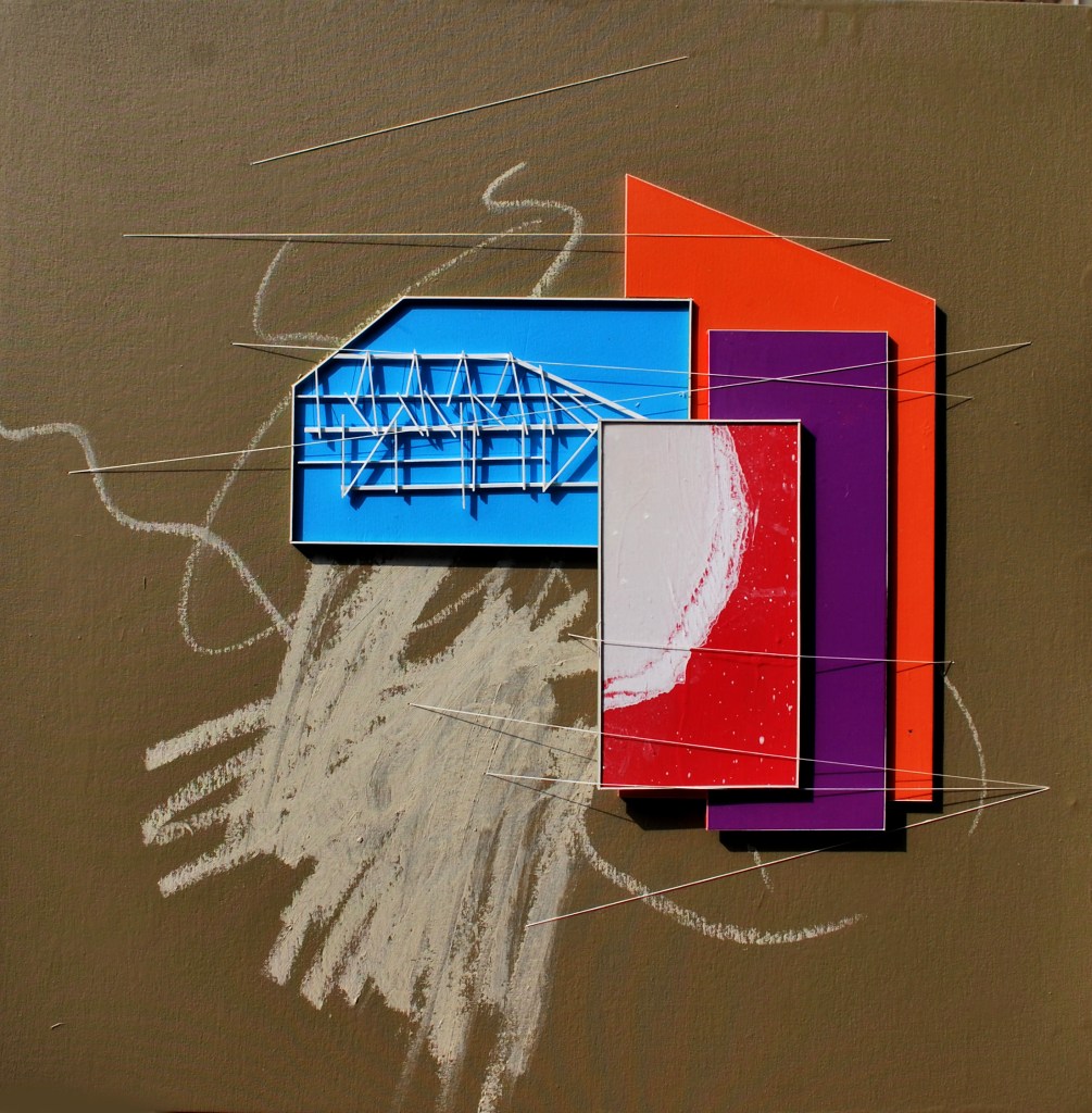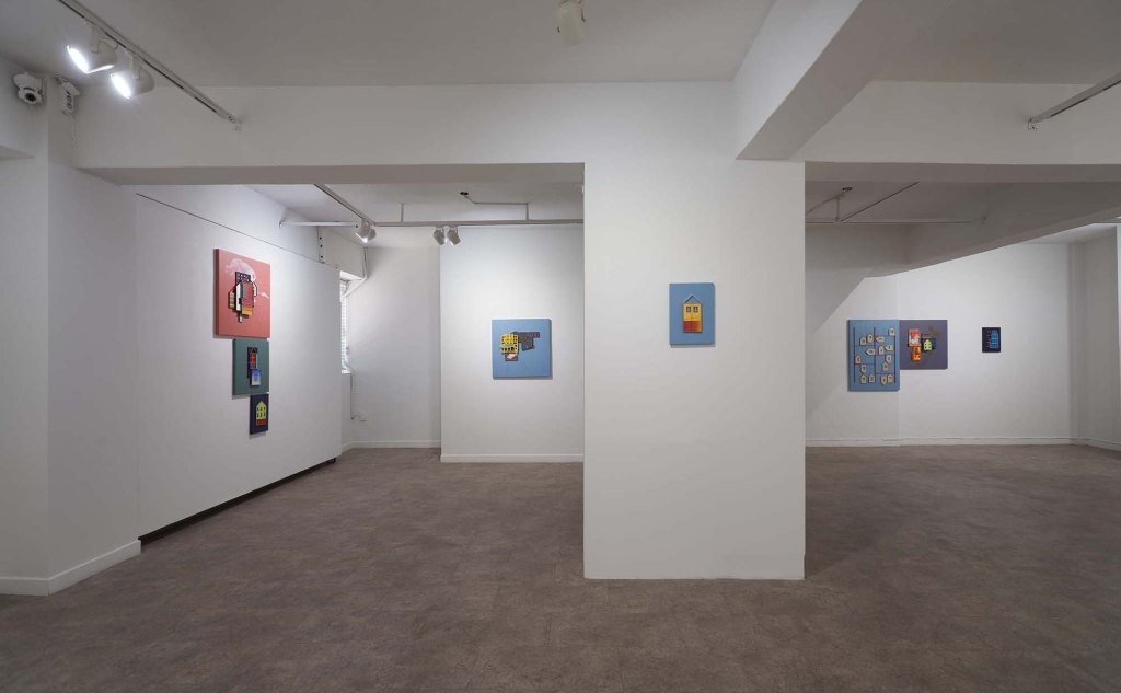 작가는 작품으로 날카로운 선으로 만들어진 물체는 서로가 포개어져 서로에게 몸을 기대어 있다. 깔끔한 선에 깔끔한 색은 한 치의 오차도 없이 서로에게 기대어야 완벽해진다는 강박적 현실의 모습처럼 보인다. 거의 모든 대상은 정면을 바라보는 형태인데 이것조차도 한 면만을 보여주어야 한다는 현대인의 강박에 대한 모습처럼 보인다. 이번 작품은 거기에 더해져 약간의 외곽 테두리를 쳐놓아 입체감을 나타냈다. 정리된 곳 위에 다시금 결계(結界)를 놓고 더욱 완벽해지려는 습관적 강박의 모습을 보여준다. 작가는 사회의 강박과 도시의 견고함이 허무하고 가벼운 것을 쫓는 시대로의 모습을 표현한 것이다. 거기에 수많은 층층의 덧대임이 있는데 앞서 말한 과거 감정을 통해 오늘을 극복하려는 자세처럼 서로의 구조를 통한 현실의 모습이 나타나있다.