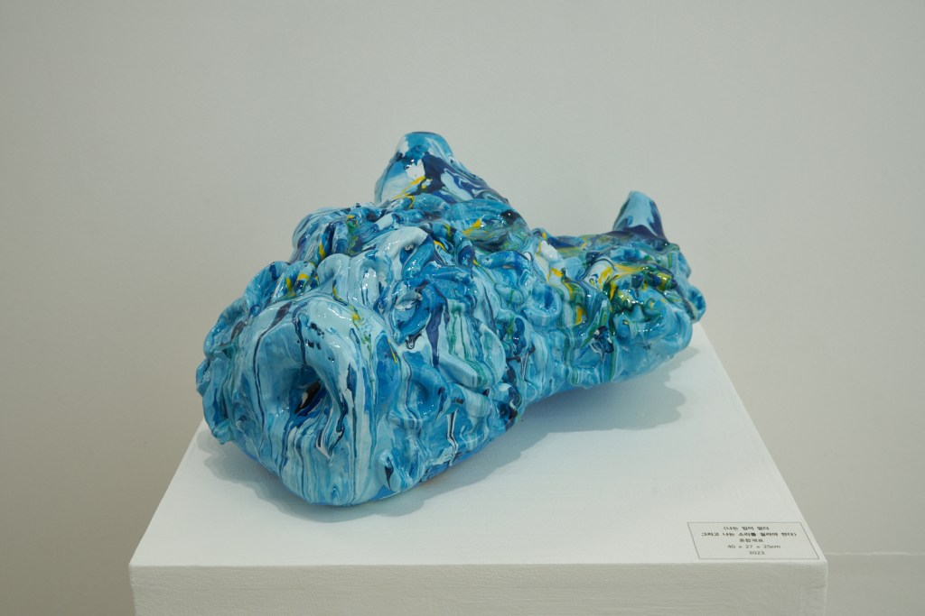 구멍의 텅 빈 공간을 바라보라. 어느새 작가의 ‘눈[目]’과 마주하게 될 것이다. 최신우 작가는 어머니와 함께 공존했던 장소에 ‘눈’을 그려 넣어, 그녀와 한 몸이었 고 동일시하려 했던 자기 존재를 바라본다. 유독 눈을 강조한 이유는 정체성 혼란 을 겪고 있는 자신의 마음을 읽어내고자, 마음의 창인 눈의 표정을 그려 넣는다. 과거 ‘나’와 무관한 존재가 아니었던, 어느 부분에서 ‘나’였던 존재를 이제는 결코 동일시할 수 없는 존재론적 울타리에서 밀어내어 무수한 존재로 변화하는 과정을 작품에 담아낸다. 눈동자와 마주치는 순간, 내가 아닌 다른 무엇이 되어가는 또 다 른 존재의 가능성을 끊임없이 제시하고 있다. 형태의 불확실성과 모호함 그리고 색 들이 서로 섞이고 흘러가는 모습으로부터 작가는 눈맞춤의 순간을 담아낸다.
