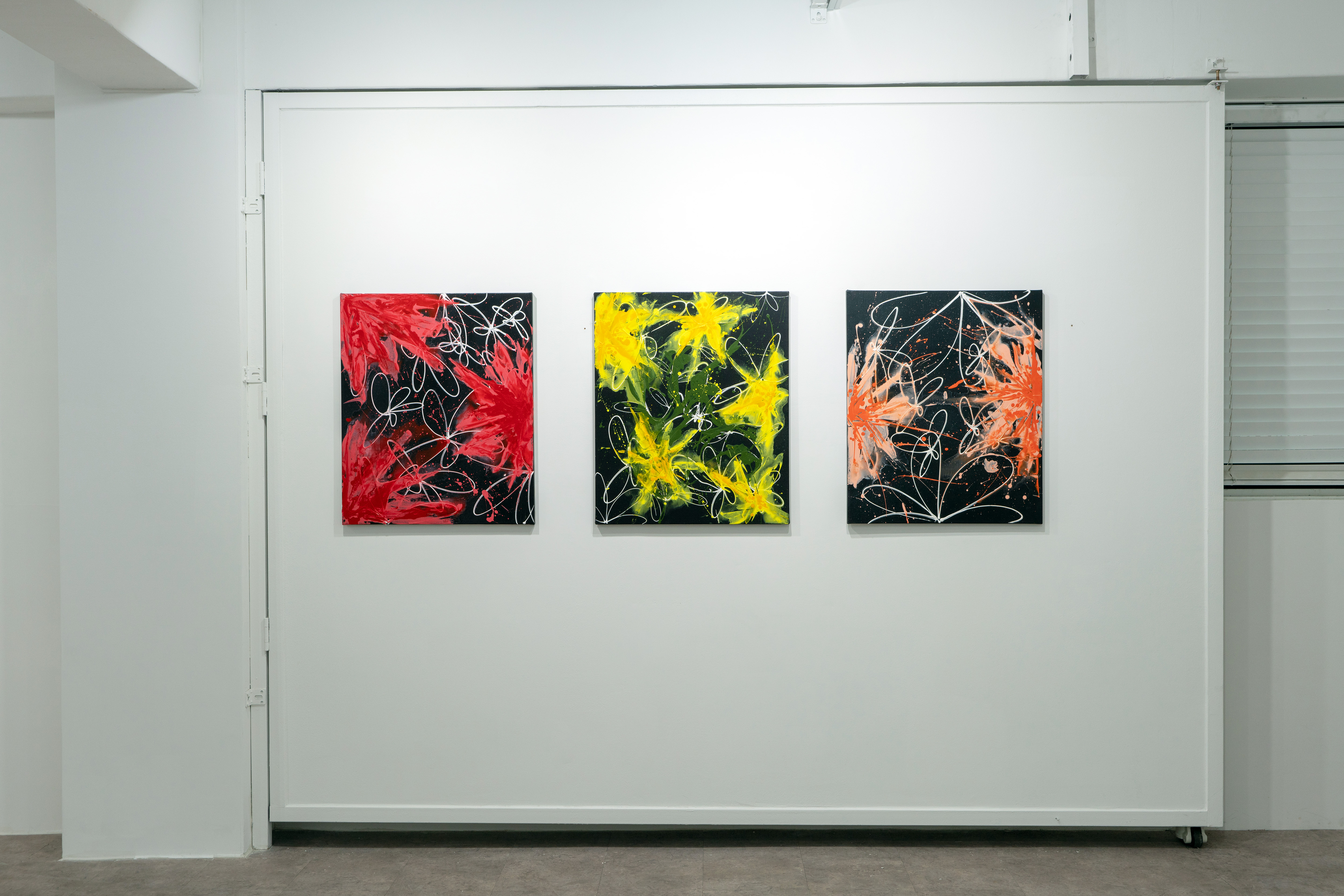 꽃의 형태는 서양 협죽도로 독초이며 약초인 식물이다. 느끼는 감정들로 하나의 꽃이지만 누 군가에게는 약이 되며 누군가에게는 독이 되는 꽃이다. 다양한 모습의 꽃을 만들기 위함과 자 유로움을 상징하기 위해 드리핑 기법을 사용하며, 소스통을 통해 꽃에 대한 입체감을 올리고 있다. 생각과 고민들은 스스로가 어두운 동굴속으로 걸어가고 있을 때 이러한 감정들은 배가 된다. 어둡고 아무것도 보이지않는 곳에서 꽃들이 보이고 그 꽃들은 여러 색들로 물들어진다. 그 색은 타인에 감정 색과 나의 감정으로 이루어 지며 그 색은 꽃을 물들게 한다.